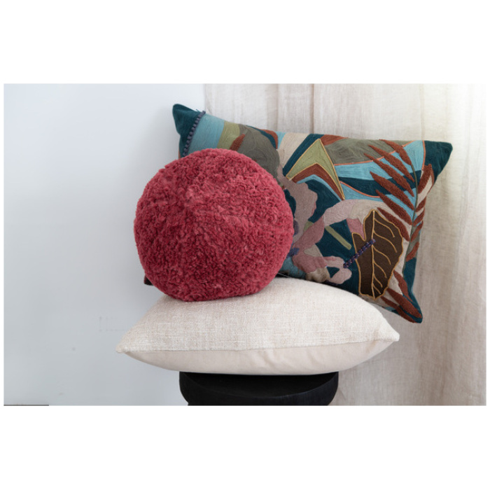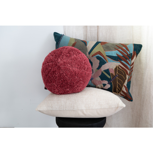 Pehmest teddy-materjalist ümmargune diivanipadi. Värvuselt sügav veinipunane. Kombineeri teiste patjadega ja lisa pehmet tekstuuri oma elu- või magamistuppa.