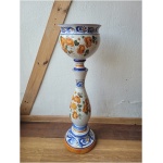 Väga eriline käsimaalinguga Itaalia majolica-stiilis postament — glasuuritud valge pind, sinised ja oranžid lillemotiivid. Ideaalne dekoratiivne lillepott või interjööri aktsent. Ei ole külmakindel.
