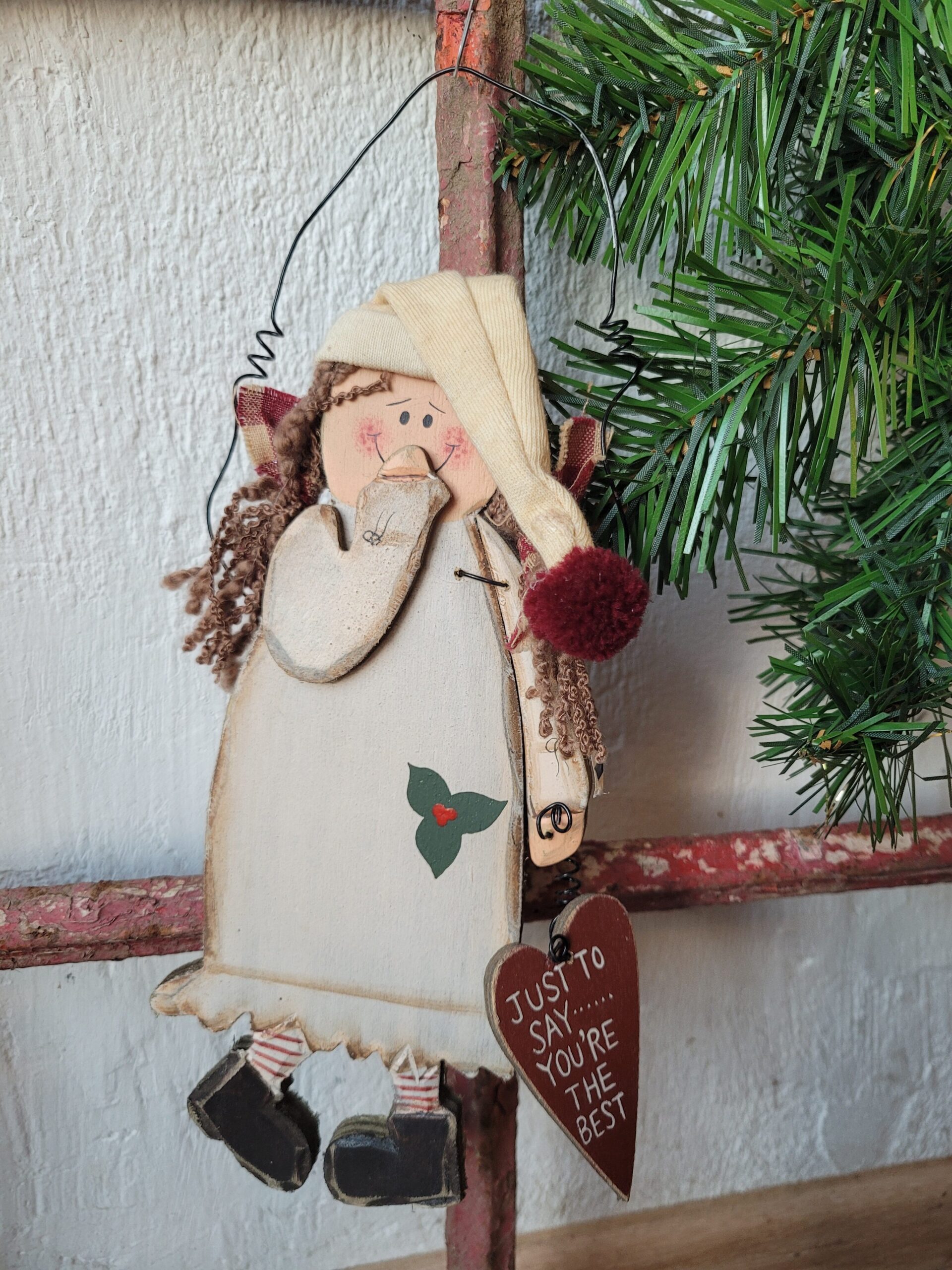 Jõuludekoratsioon tüdruk sõnumiga “Just came to say you’re the best”