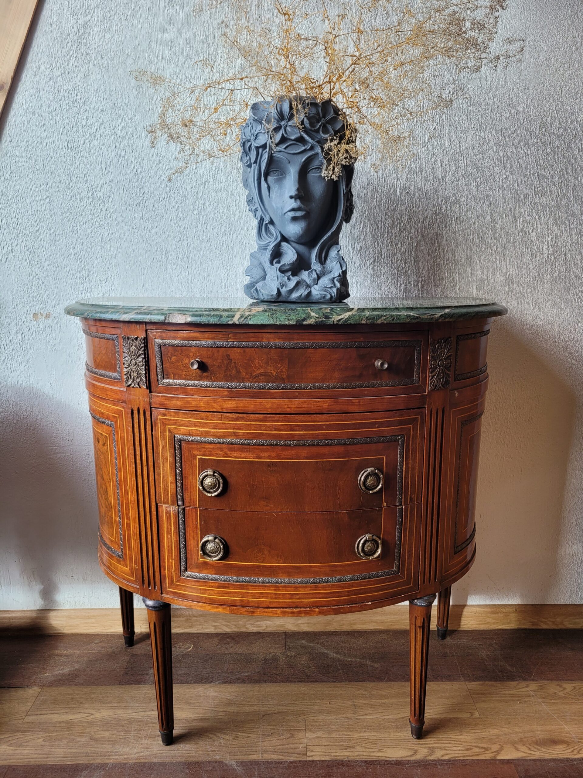 Louis XVI stiilis poolringikujuline kummut marmorkattega