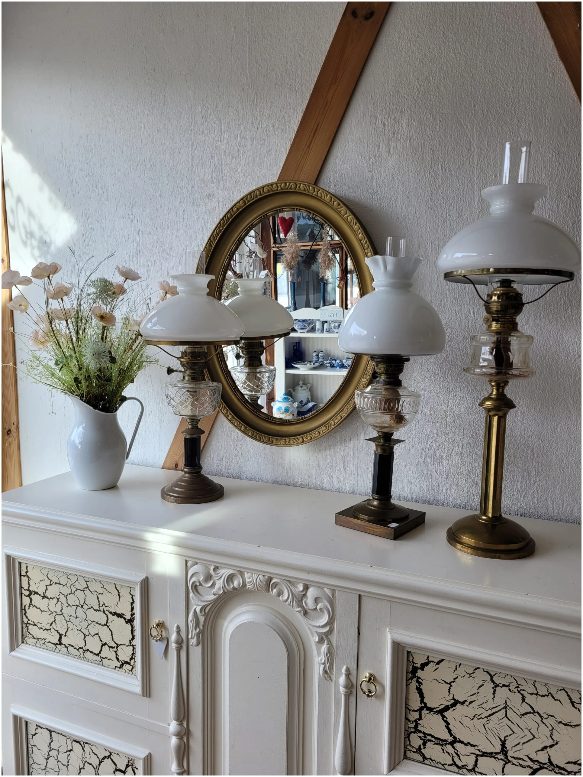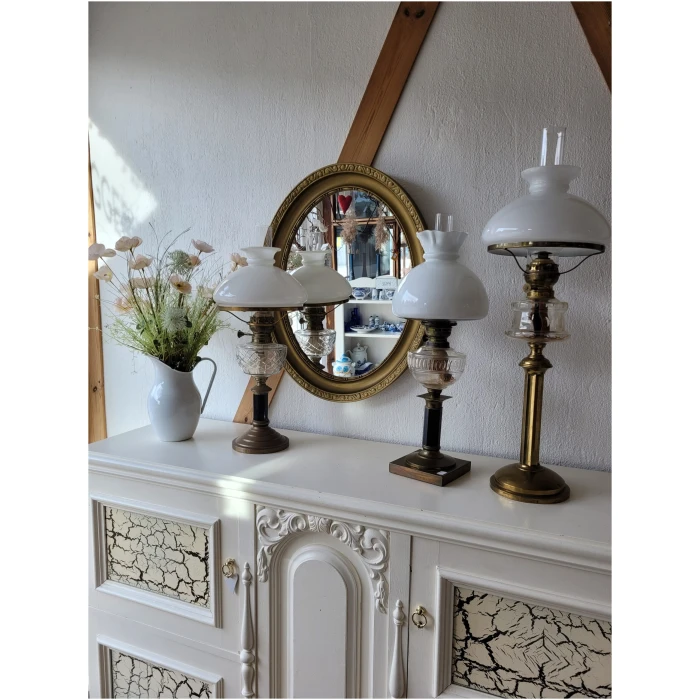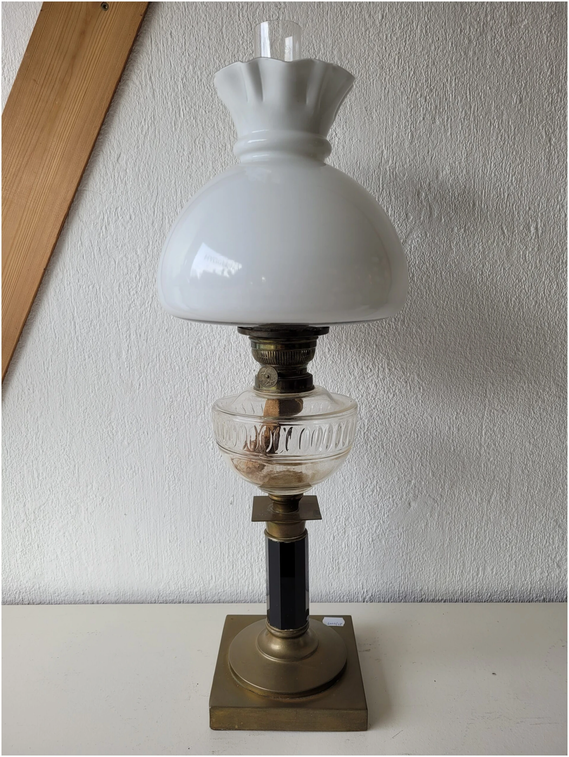 Antiikne (aastast 1850…) petrooleumlamp klaasist kupliga – lisab vanakooli šarmi teie interjöörile. Selle unikaalne disain ja pehme valgus loovad nostalgilise atmosfääri igas ruumis.