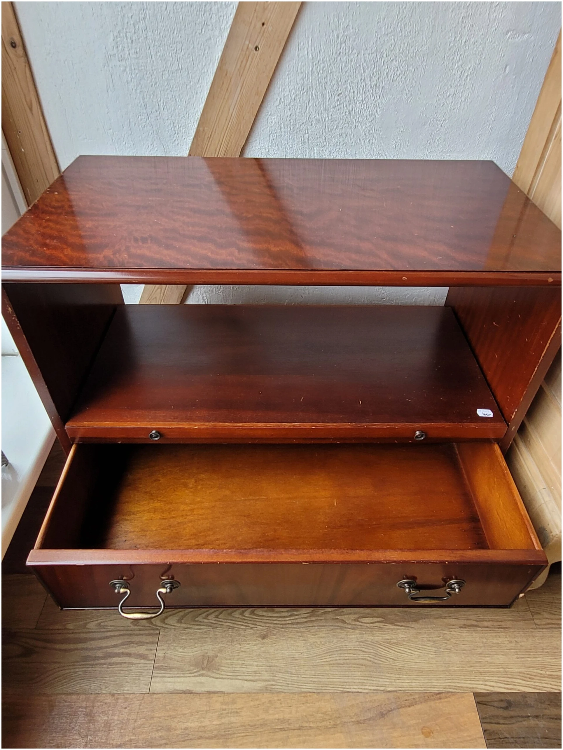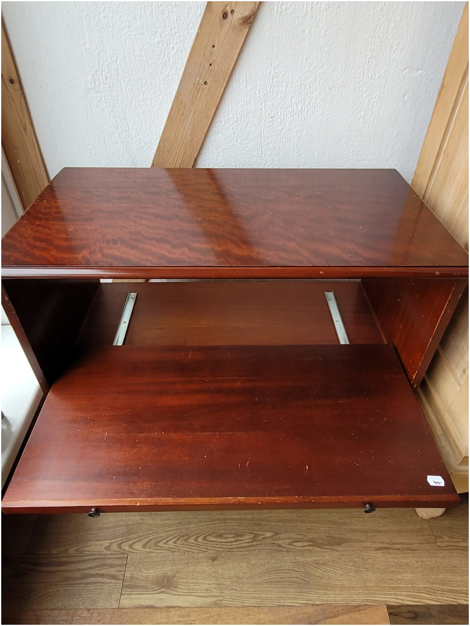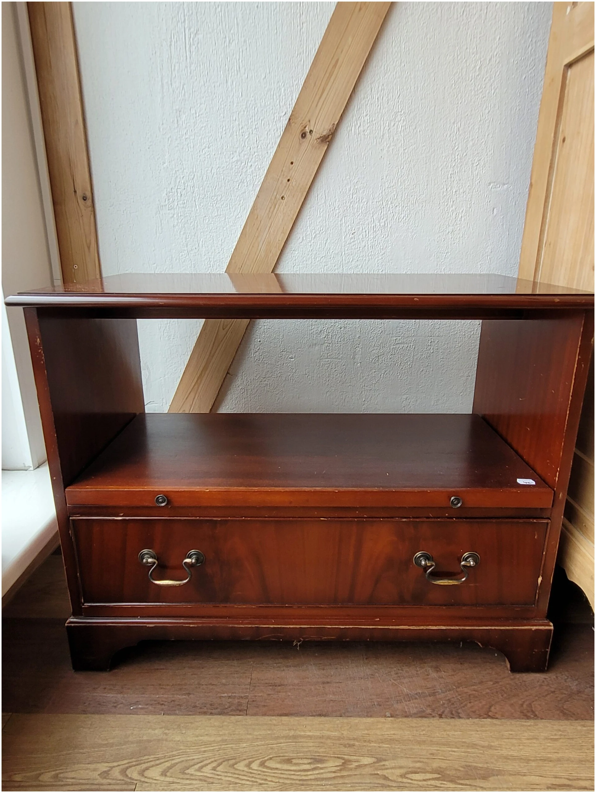 Sahtli ja väljaliugleva osaga TV-kapp või kummut asjade hoiustamiseks.