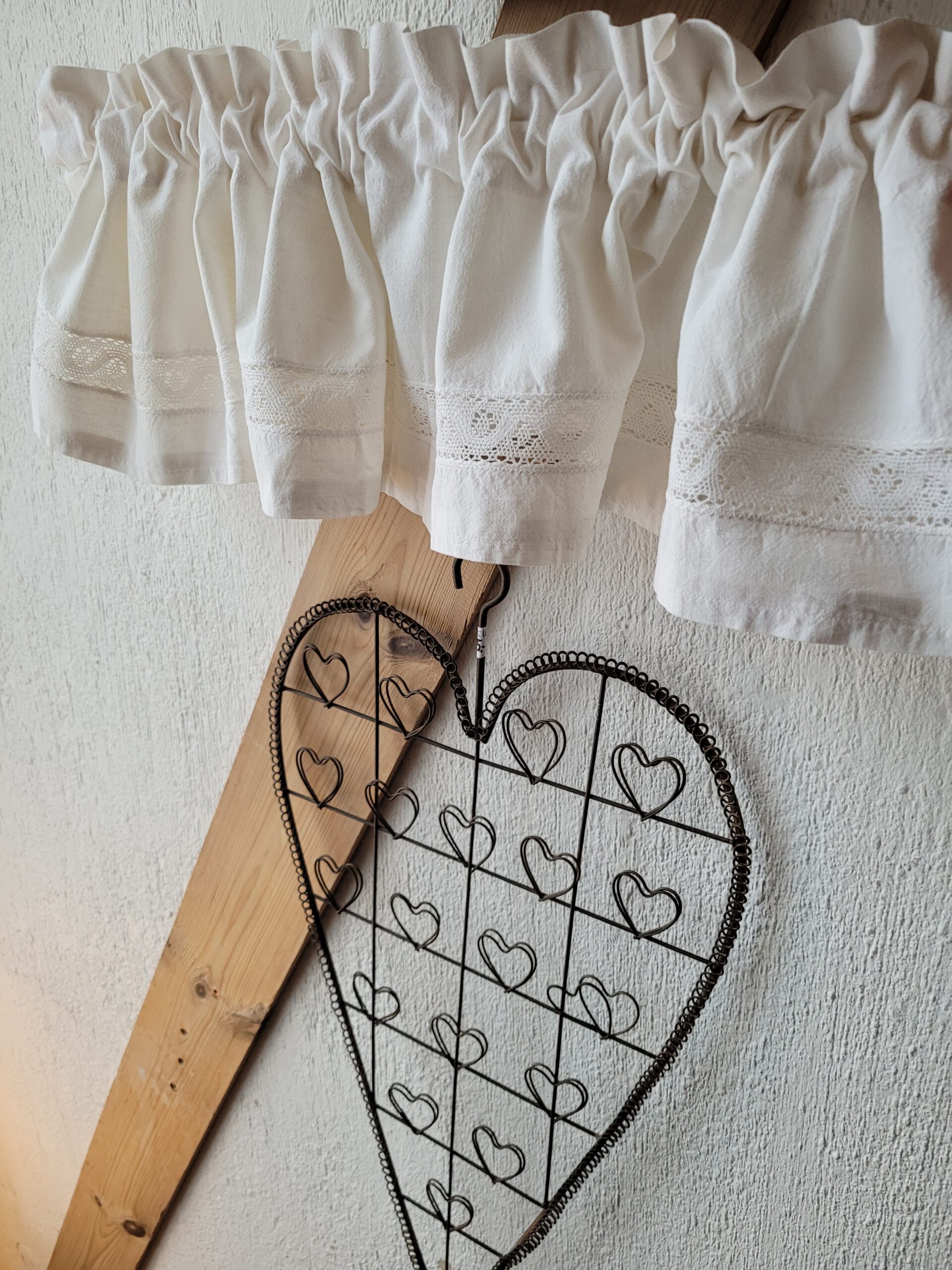 Armas pitsiga valgest puuvillast ülakardin.