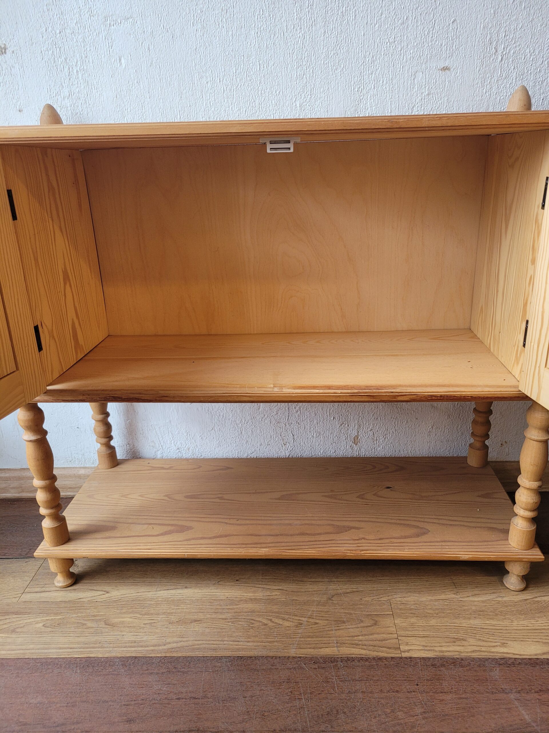 Mõõdud: laius 75 cm, sügavus 28,5 cm, kõrgus 65,5 cm (koos puidust kõrgendustega 70 cm)